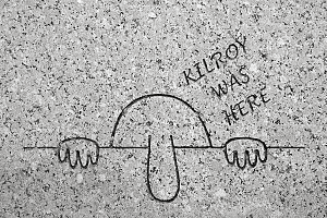 Кажуть, що рух вуличних митців бере початок з 1970-х у США. Але є й історія, що років 20 до того у США, а саме в Детройті, жив чоловік на ім’я Кілрой (Kilroy). Він працював на заводі з виробництва зброї і страшенно полюбляв лишати напис “тут був Кілрой” на ящиках зі щойно виготовленими бомбами. Напис швидко став популярним серед солдат, до нього додали елементарний малюнок і “Кілрой” почав подорожувати повсюдно з американськими солдатами…