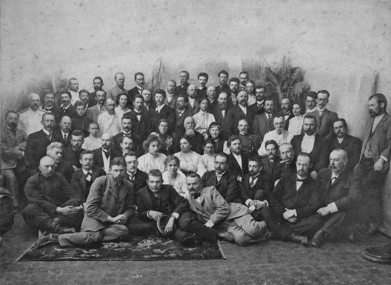 Під час відкриття пам’ятника І.Котляревському в Полтаві. Українські письменники В.Стефаник, Олена Пчілка, М.Старицький (верхній ряд) та М.Коцюбинський, Леся Українка, Г.Хоткевич, В.Самійленко.